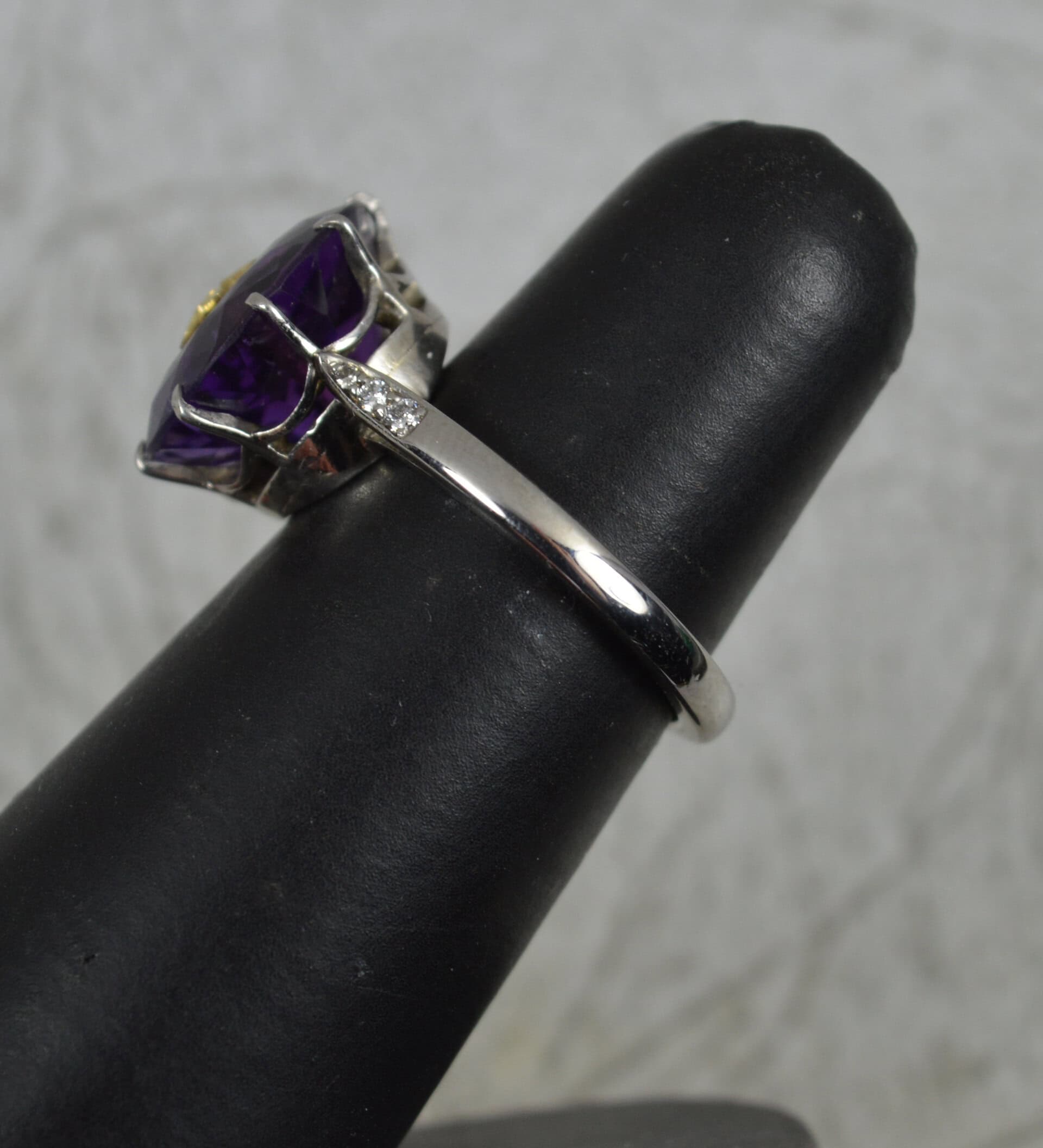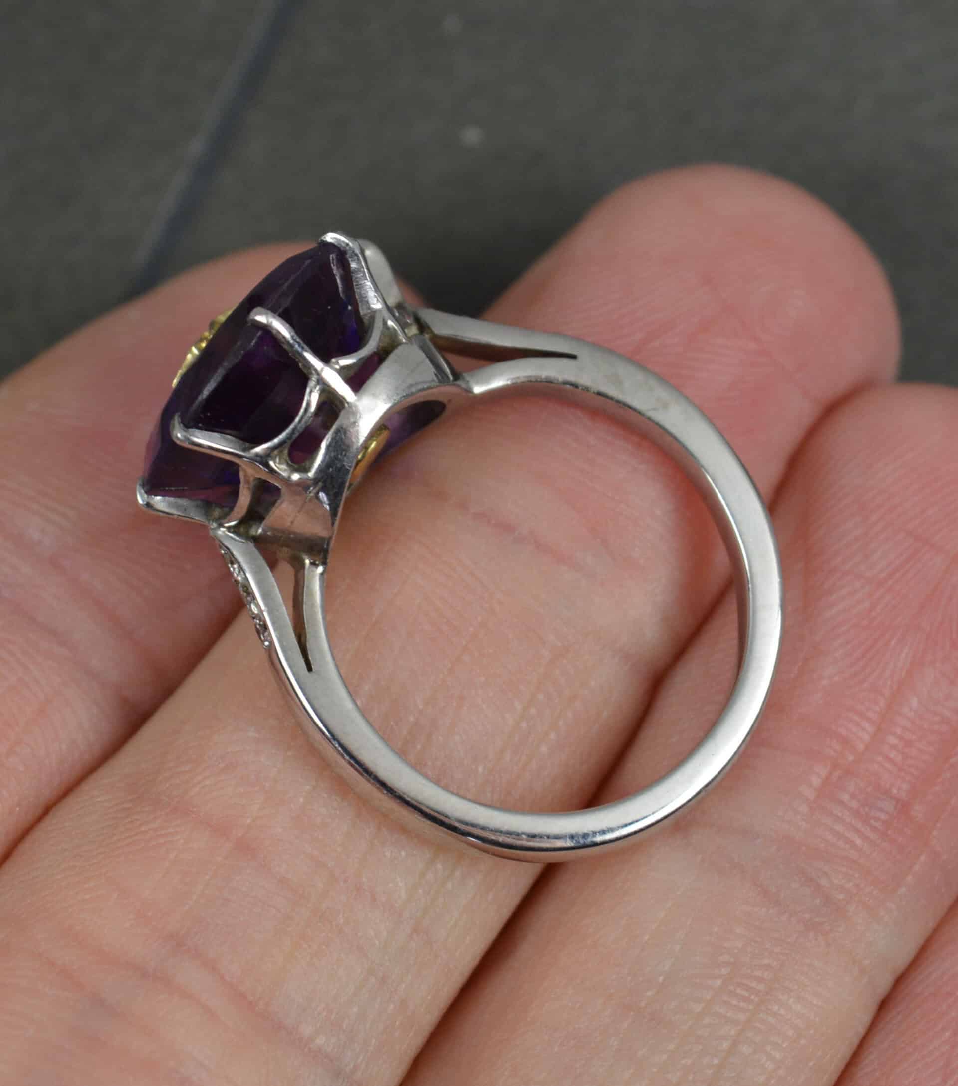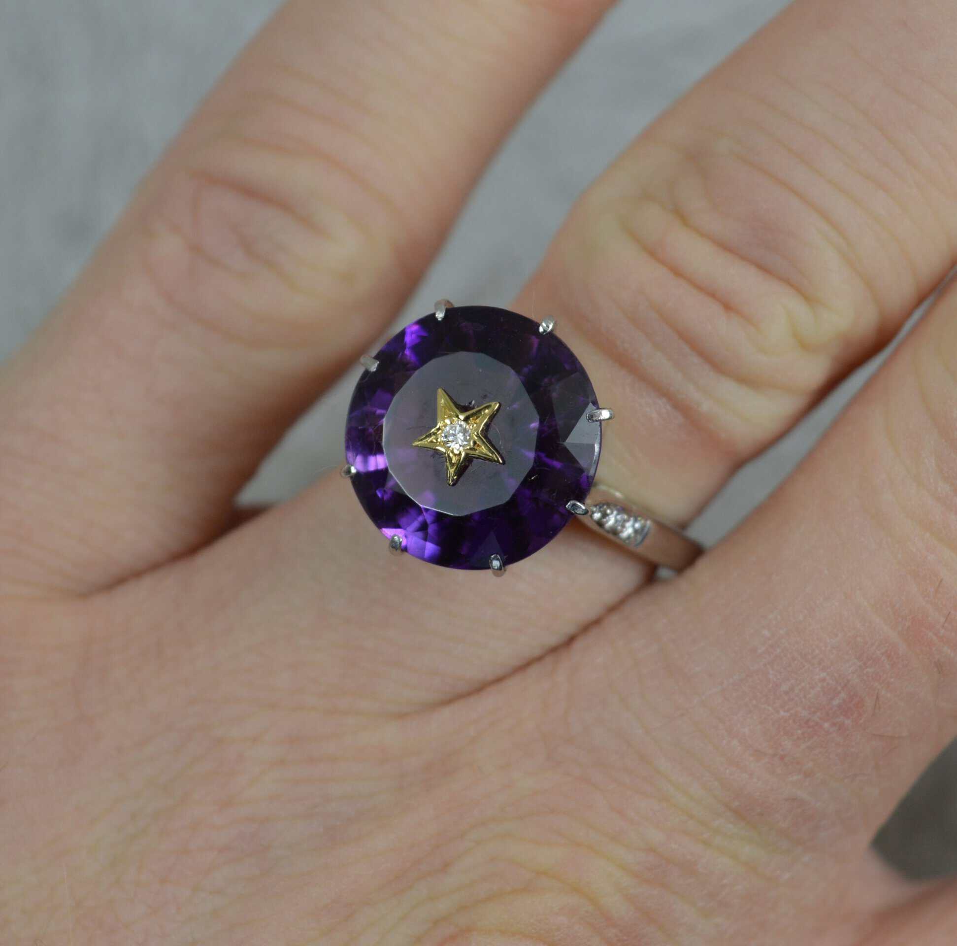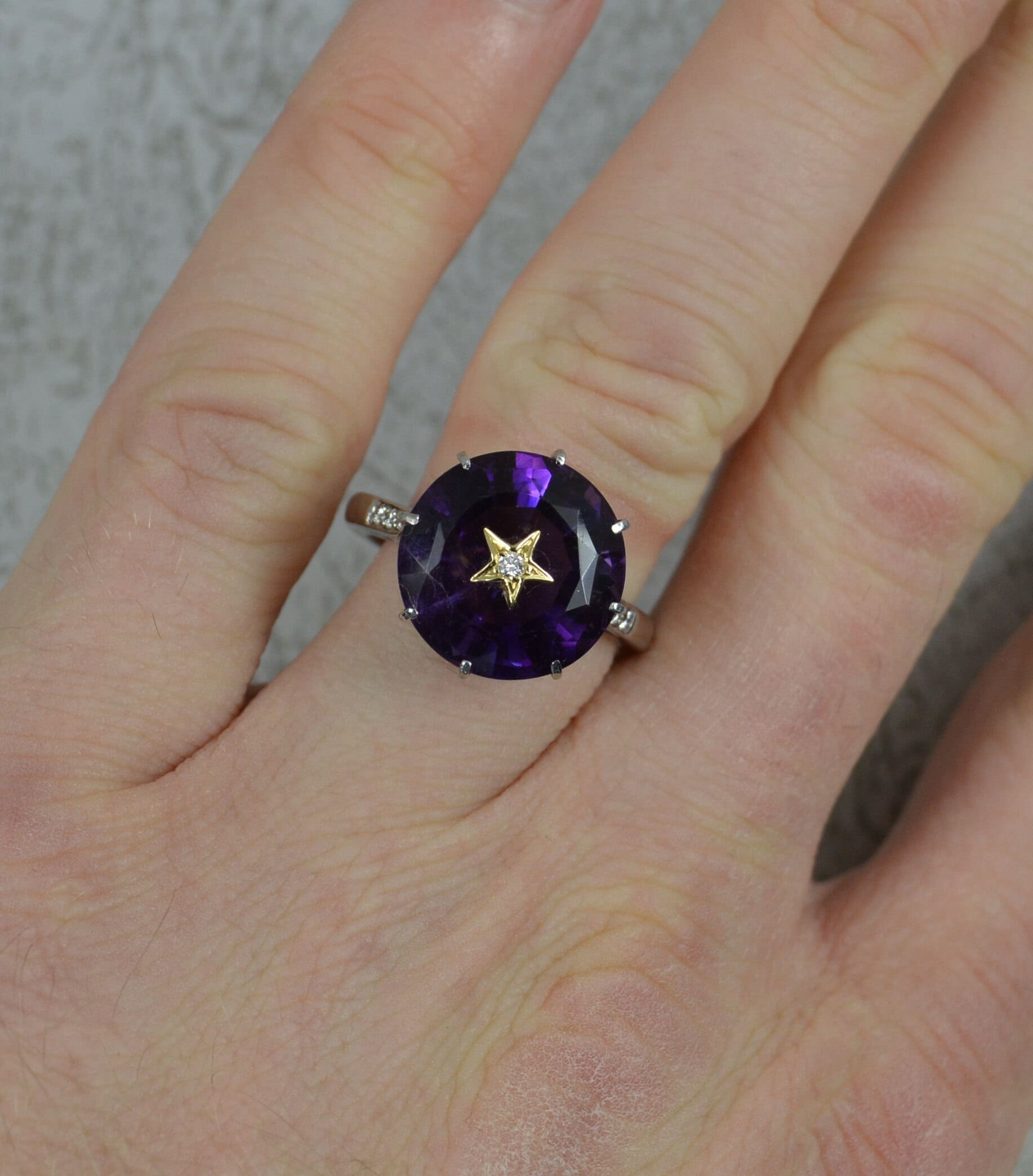 Designed with a large round cut deep Siberian purple amethyst in eight claw mount. Set with a diamond to the centre in a star head setting.