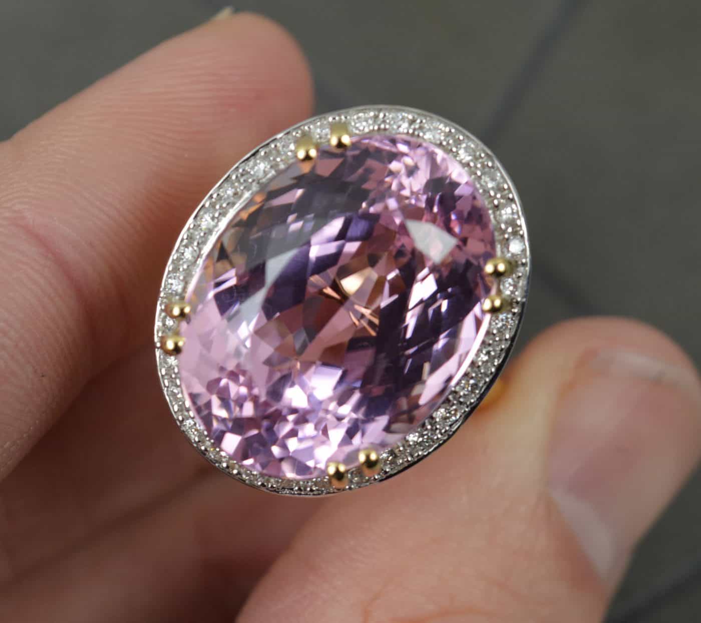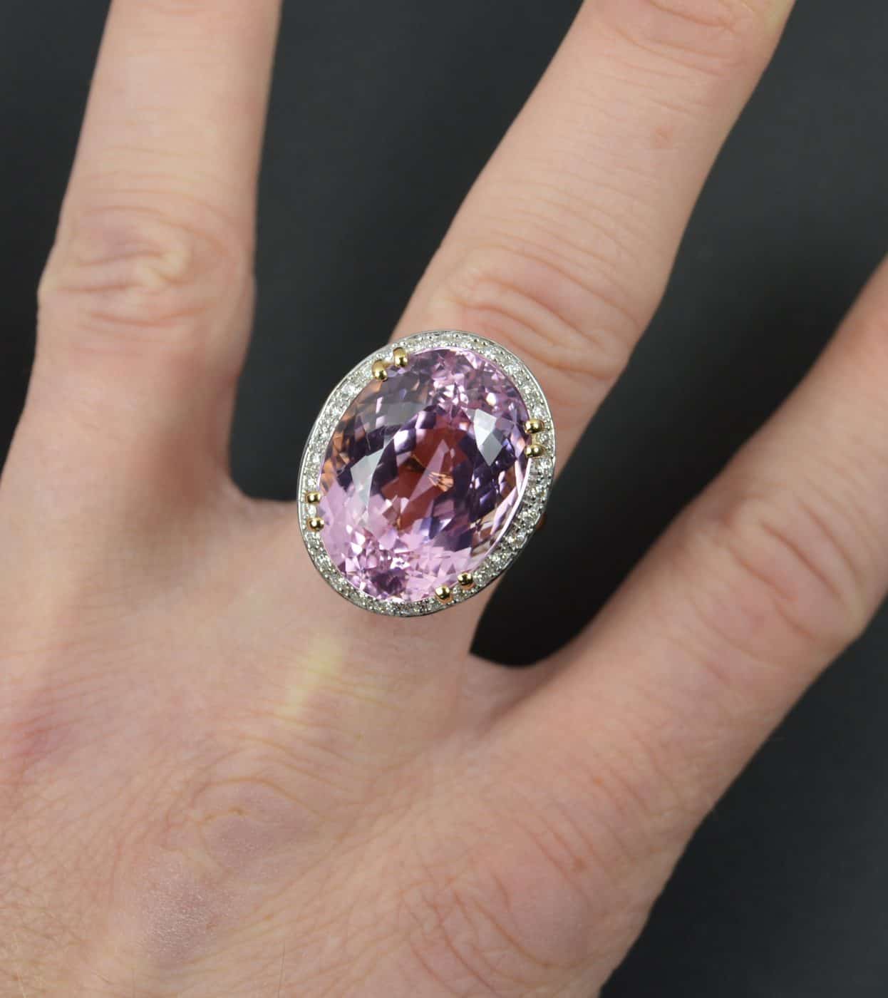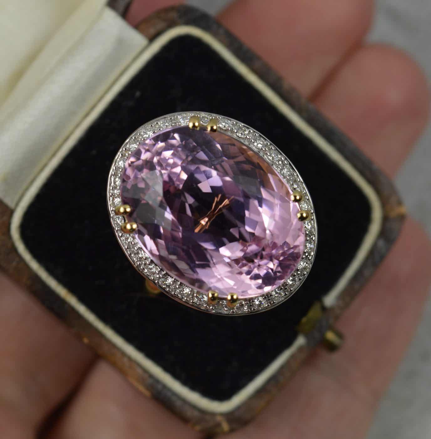 Designed with an oval cut pink kunzite to the centre, 15mm x 20mm. Wonderful colour.