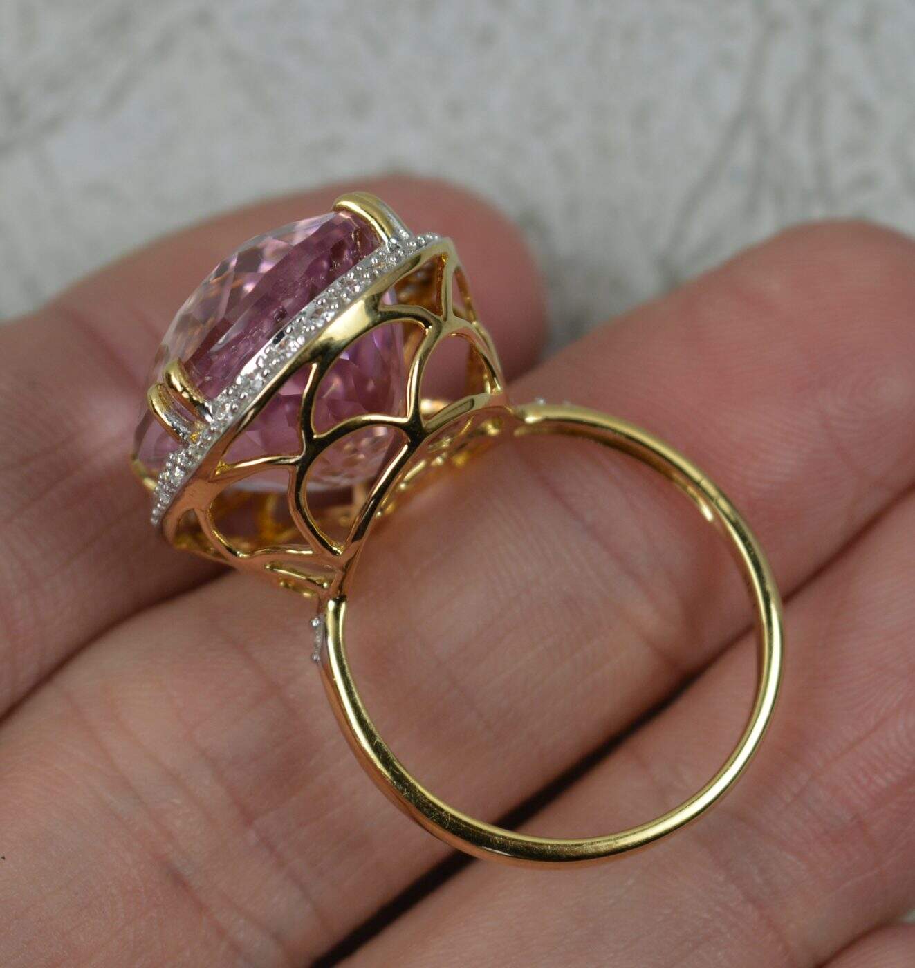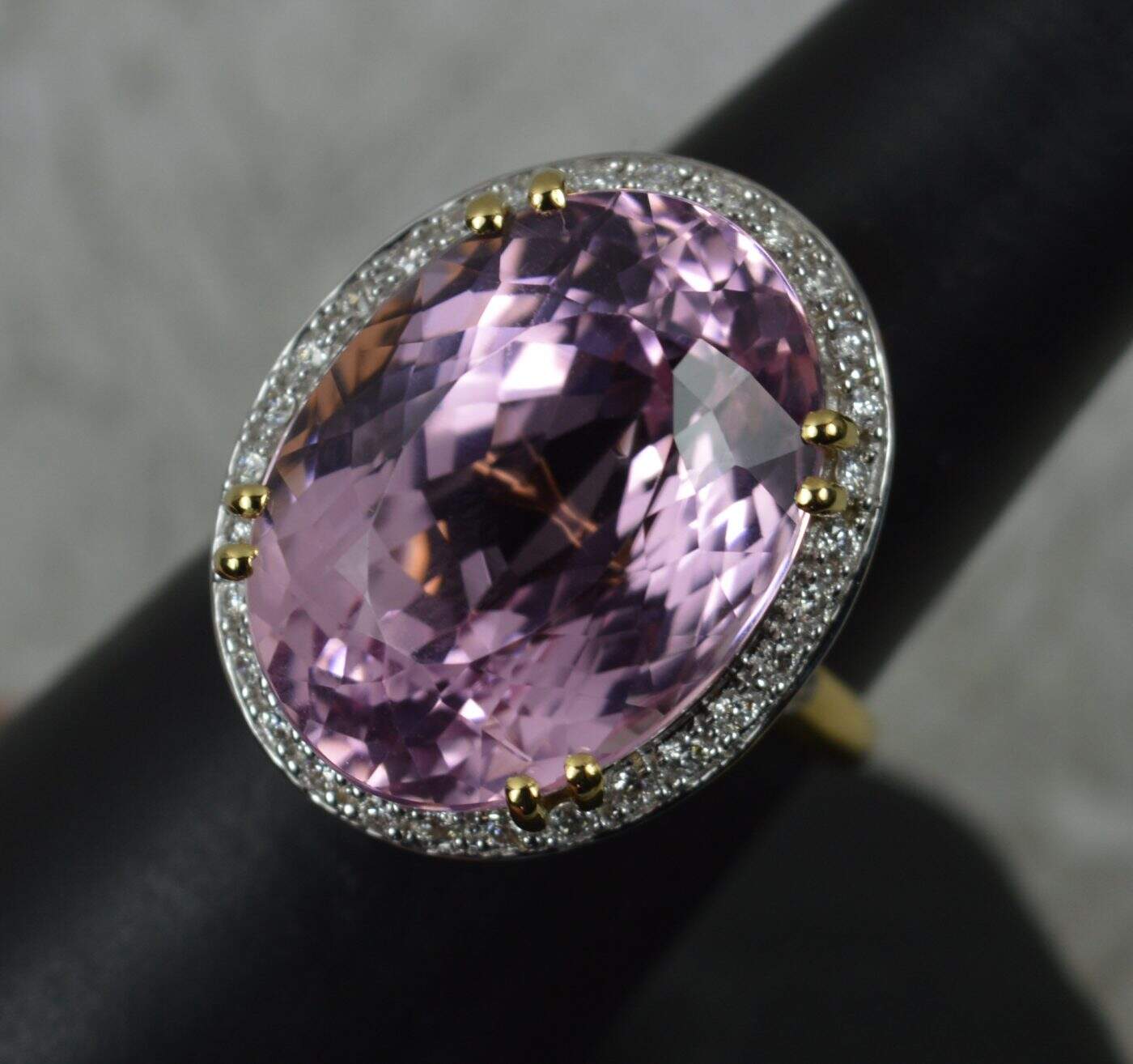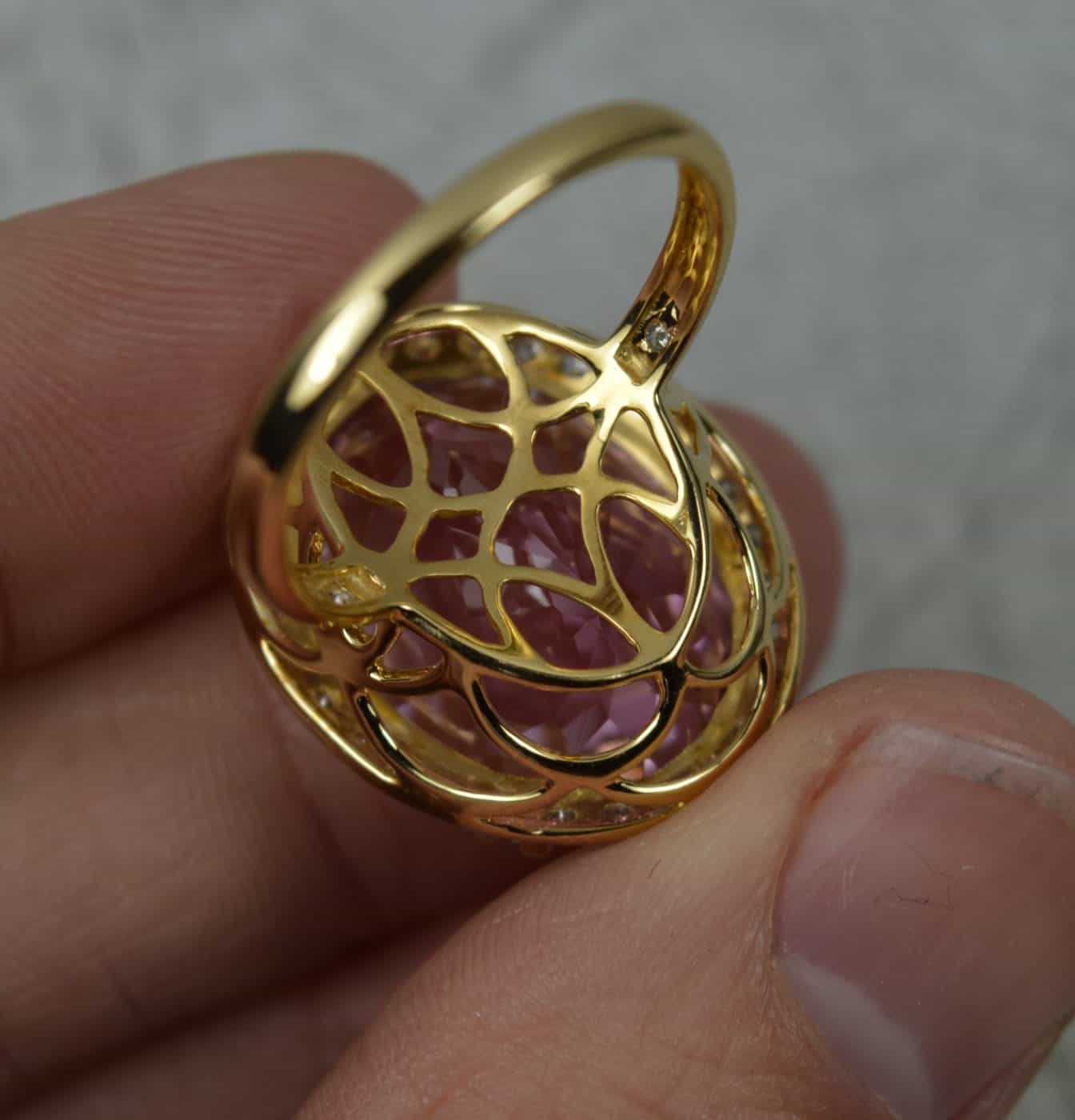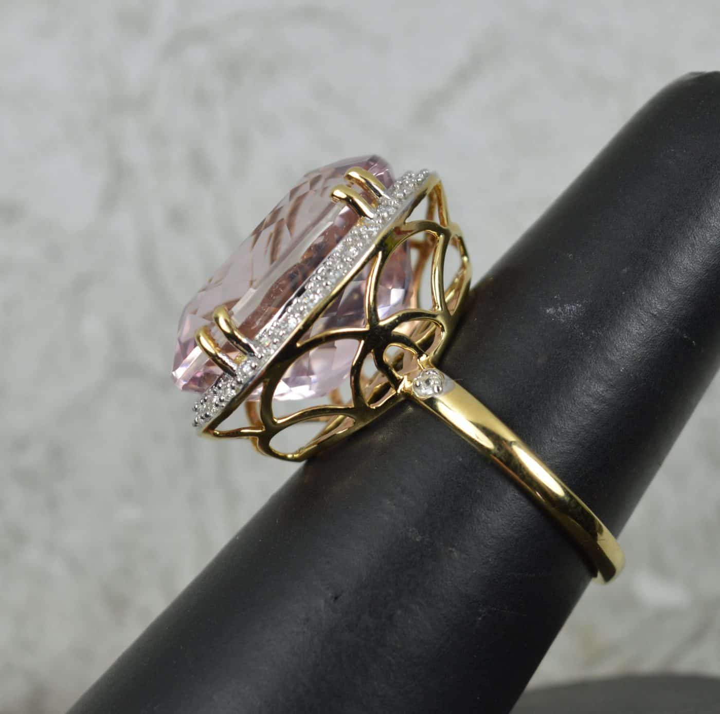 Designed with an oval cut pink kunzite to the centre, 15mm x 20mm. Wonderful colour.
