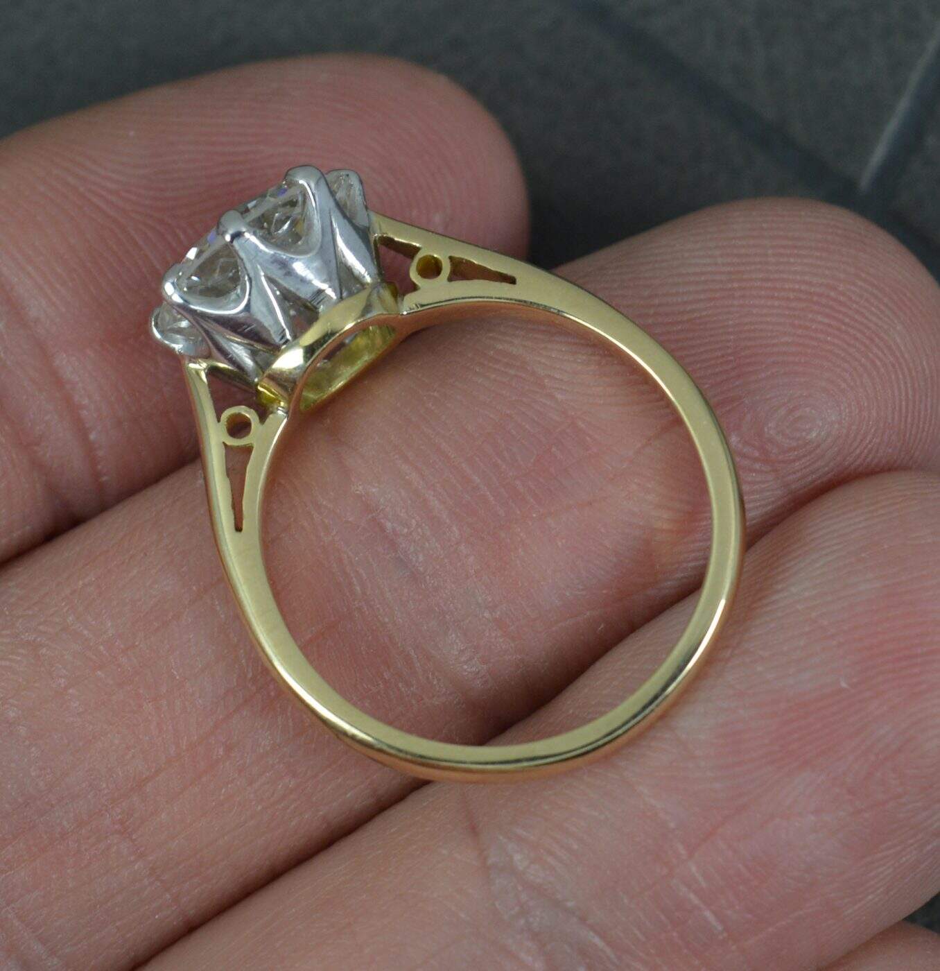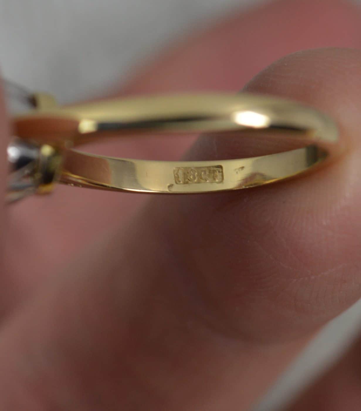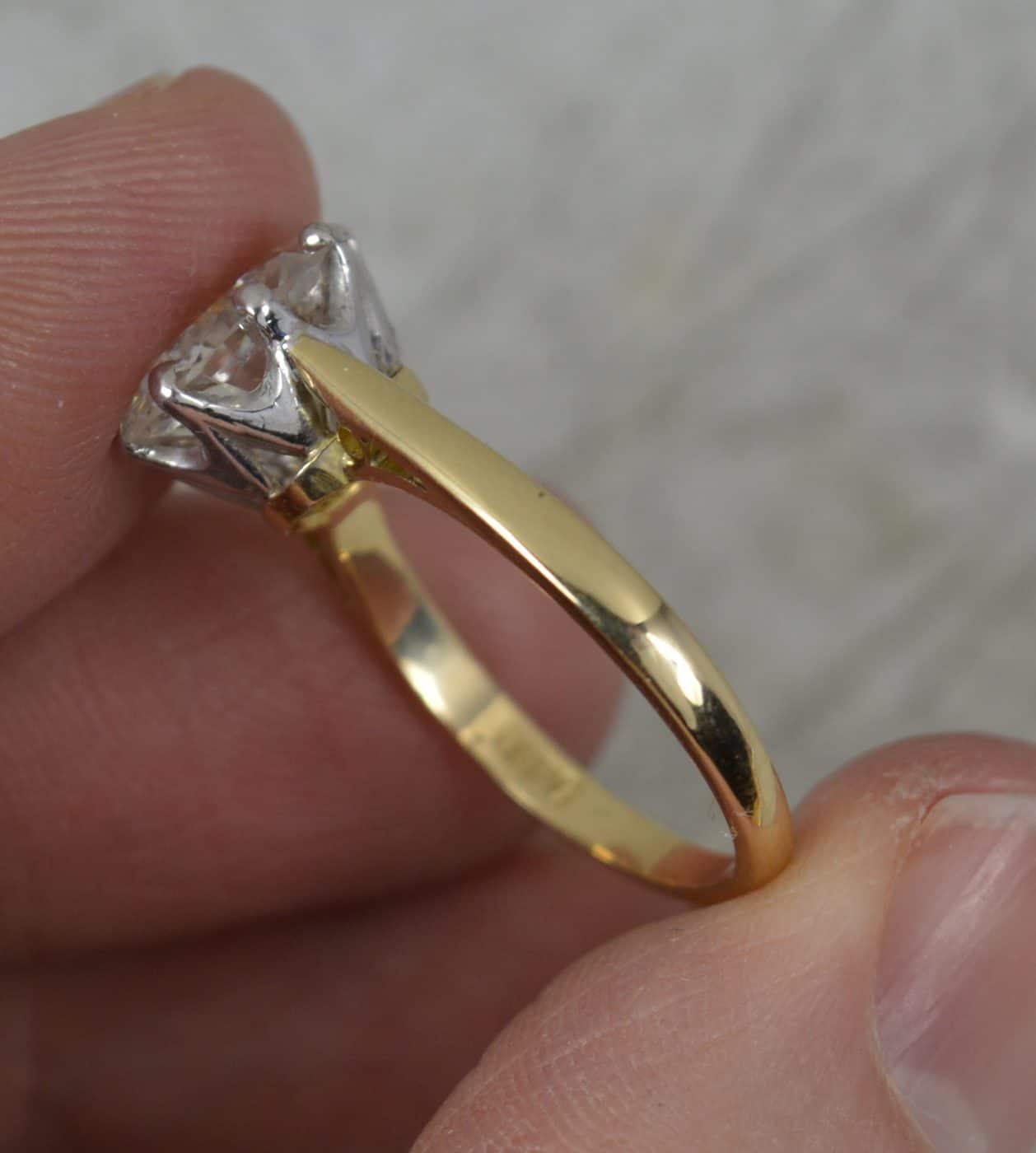 Solid gold shank, marked 18ct to indicate 18 carat yellow gold with an eight claw white setting.