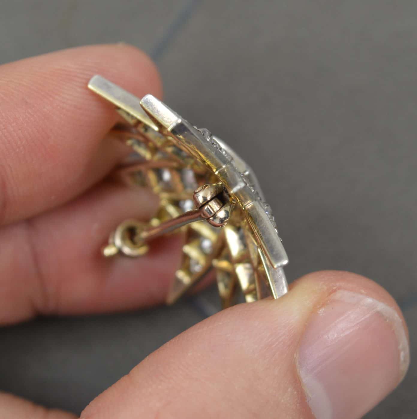 Solid 15 carat gold with silver head setting.